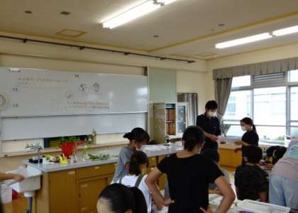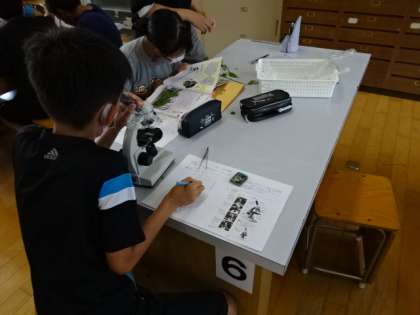 葉の裏側にあるうすい皮を顕微鏡で観察します。葉の表面に小さな穴があることが顕微鏡で見て分かりました。