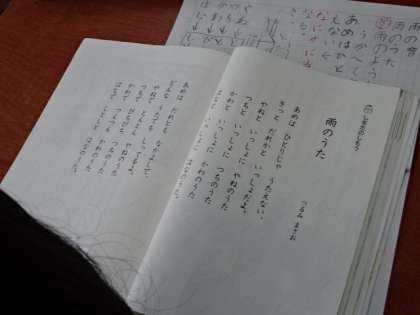 国語では,「雨のうた」という詩を読んでいます。読み方を工夫しながら,声に出して詩を楽しんでいます。