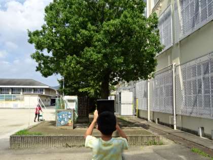 理科の学習で,自分が決めた樹木を4月から継続して観察しています。写真を撮影し,季節が移りかわると樹木の様子もどのように変化しているか調べ,まとめています。