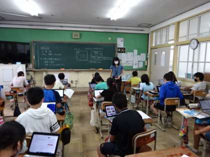 6年生は社会の歴史学習で学んだことを,タブレット端末を活用して自分なりにまとめています。