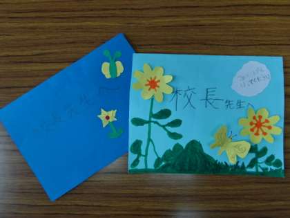 4年生は図画工作科の時間,「カードで伝える気持ち」の学習でメッセージカードを作成しました。そして,「校長先生に作りました。」と届けてくれる子がありました。カードには,「いつも みんなのためにがんばってくれて ありがとうございます。」「いつも あいさつに来てくれて ありがとう。」のメッセージがありました。飛び出す仕掛けも工夫されていて,心温まるメッセージカードにとてもうれしい気持ちになりました。