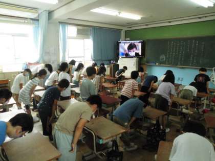 オンラインでの始業式です。画面越しで直接顔を合わせてお話できないのは残念でしたが,2学期,今いる自分からのレベルアップを目指してほしいとお話しました。そのために,「相手意識をもってしっかりと言葉のキャッチボール,対話をしてほしい。」と全校に伝えました。