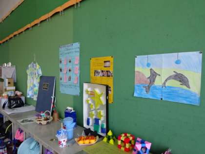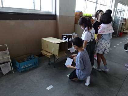 それぞれ,夏休みに頑張って取り組んだことが分かります。お互いの作品をみんな興味深げに見ています。