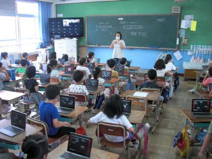 校内でも始業式や朝会などでzoomを活用していますが,2年生も実際にzoom体験をしました。先生と実際につながり,どのようなことができるみんなで確かめました。また,「個人情報について」や「安易に発した言葉(発言・書き込み)が人を傷つけることもある。」といった使う上で大切なこともみんなで確認しました。