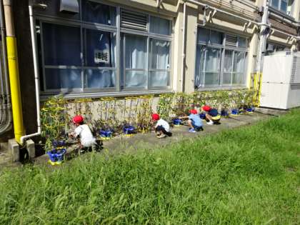 夏の草花を観察です。アサガオはまだ花を咲かせているようで,水やりも頑張ってしています。