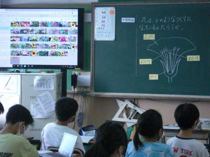 夏に咲く花を観察してきた5年生。今日は花のつくりについて,詳しく調べていきました。