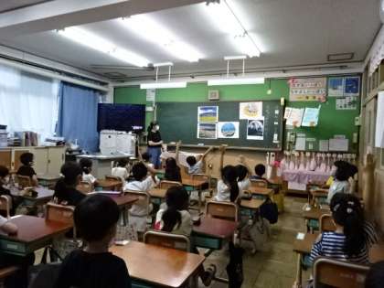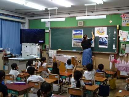 「うちゅうせんに のって」という教材で,美しいものに触れました。宇宙から見た地球の美しさに触れ,一年生なりに感じたことを発表し合いました。