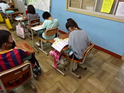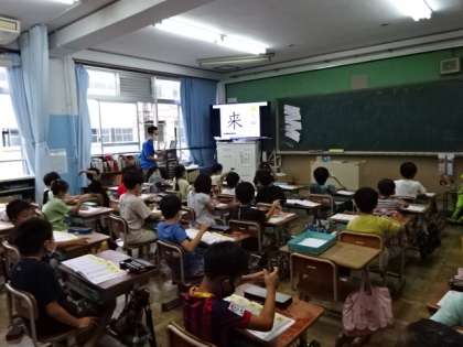 新出漢字の学習です。書き順にも気を付けて丁寧に練習しています。学習した漢字は正しく文中で使えるようにしていきます。集中して取り組む2年生です。
