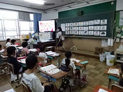 3年生の外国語活動の時間の様子です。英語をしっかり聞き,自分も同じように声に出して話していきます。繰り返し声に出して発音することで,自信もついてきているようです。