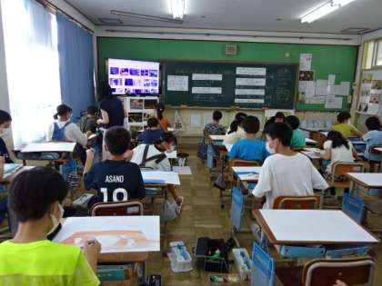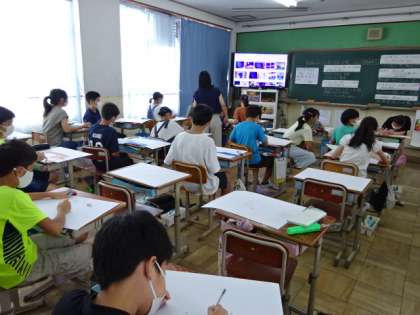 6年生もお話の絵に取り組んでいますが,下絵ができて色を塗り始めました。お話の場面を細かにとらえ,絵に表していきます。6年生らしい作品が仕上がりそうです。