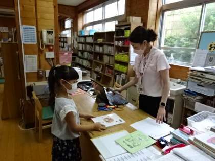 図書館に行って,学級で読む本を借りました。いつでも本を読むことができるように,自分の読みたい本を教室の手元に置いています。