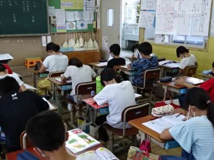 新出漢字の練習です。ドリルや練習帳を活用して新出漢字を学習していきます。学習した漢字は,文中で正しく使えることも大事になっていきます。しっかりマスターできるように,みんな集中して学習に取り組んでいます。