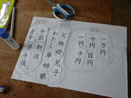 漢字で言葉を作り,仲間分けをしていきます。いろいろな仲間に分けて,漢字を使って言葉作りに取り組んでいました。