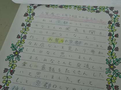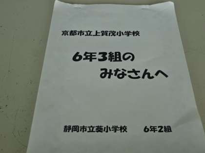 静岡市立葵小学校の6年生に向けて,私たちの住む上賀茂の魅力をオンラインで伝えました。その時の感想が書かれたお手紙が届いています。今度は葵小学校の6年生の皆さんの発表を聞けるのが楽しみです。