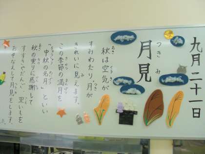 本日9月21日は「十五夜」です。あいにくの天気で,きれいな月を…とはいきませんが