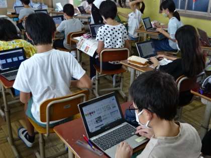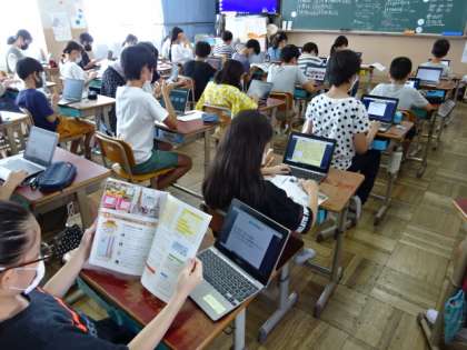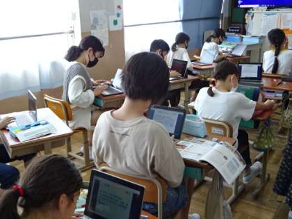 社会の時間の調べ学習の様子です。タブレット端末を使って,自分に必要な情報を探し出すことも,スムーズにできるようになってきました。