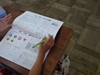 安全ノートを活用して,交通ルールについてみんなで確認しました。道路標識等の意味も確認し,自分の身を守るための行動について再確認することができました。