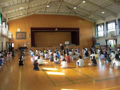 10月の児童朝会は,5年生が体育館に集まり,それ以外の学年は教室でオンラインでの形で行いました。緊急事態宣言が解除となり,制限されていたことが少しずつですができるようになりました。