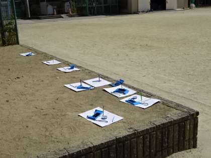 「地面のようすと太陽」の学習です。今日は時間が経つと,影の位置がどのように変わっていくのか,運動場に出て来て,体育の合間などの時間も使って実際に観察です。