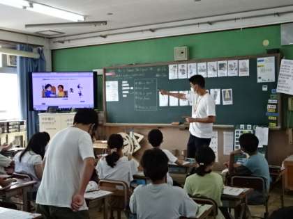 6年生の外国語の学習の時間の様子です。この単元では,職業や性格について英語で紹介し合います。