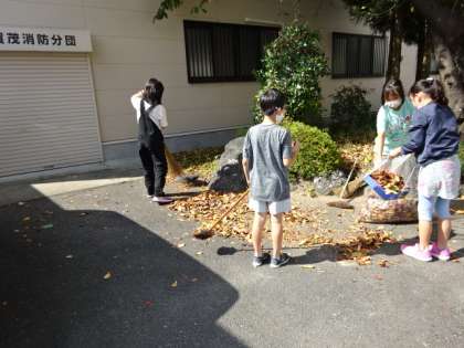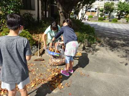 落ち葉の季節です。外掃除の5年生,落ち葉掃きに一生懸命です。すぐに袋がいっぱいになります。
