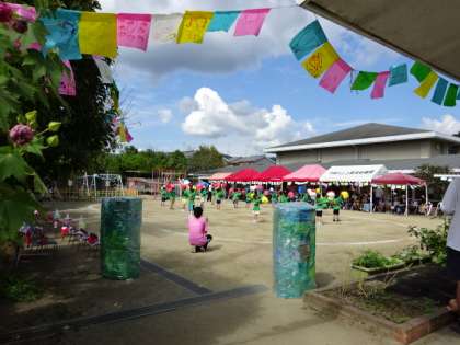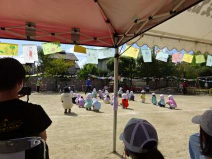 先日の土曜日,本校と隣接する上賀茂幼稚園の運動会が園庭で開催されました。感染対策をとる中での実施ということで,年長クラスと年少クラスに分かれての2部制で行われました。良い天気の下,力いっぱいの園児たちの姿は本当に素敵でした。