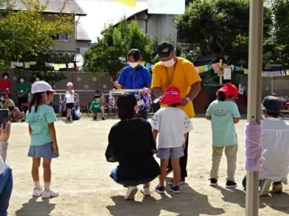最後に園長先生から頑張った園児たち一人一人にメダルが渡されました。年長さんの子たちは,来年度,小学校に入学です。元気な子たちが入学してくるのを心待ちにしています。