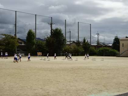 4年生はスポーツフェスティバルでハードル走に取り組みます。リズムよく,ハードルをまたぎ越すイメージで走ります。本番,いい走りができるように頑張っています。