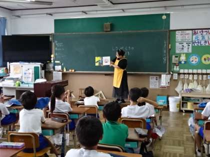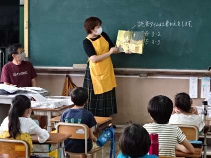 のほほんクラブの方々による朝の読み聞かせ。久しぶりの開催です。今日は3年生と5年生の教室で朝の読み聞かせをしていただきました。