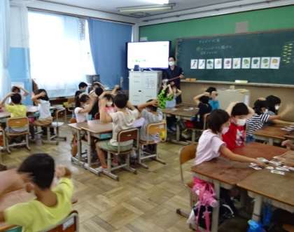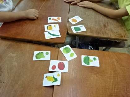 今日は野菜のカードを使って,カード取りゲームをしました。楽しいゲームを通して,英語に慣れ親しんでいます。