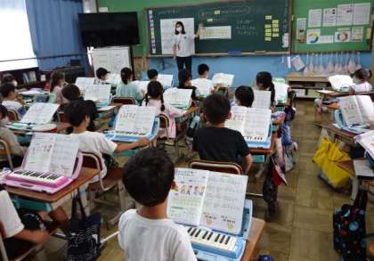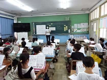 鍵盤ハーモニカにタンバリンやカスタネットなどの楽器も使い,みんなで演奏を楽しみました。
