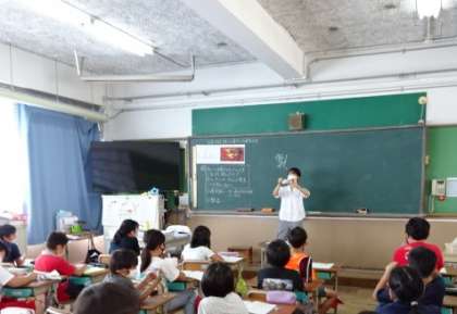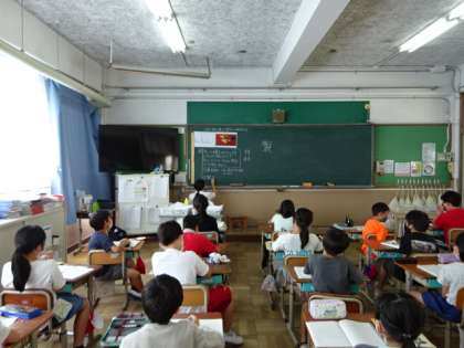 工場で作られるものについて学習しています。今日は,京都の名産の八つ橋を取り上げて,学習を進めていきました。