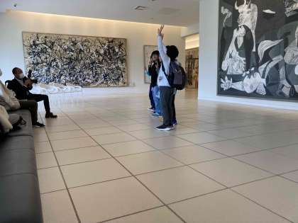最上階にある大きな絵画の前でグループごとに記念撮影です。