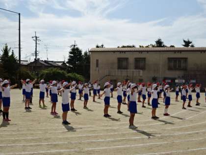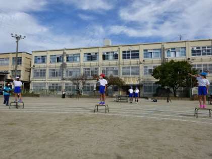 スポーツフェスティバル2日目,最初は4年生の部です。各色の代表がはじめの言葉を言い,元気に幕開けです。大玉ころがしでは,大いに盛り上がりました。