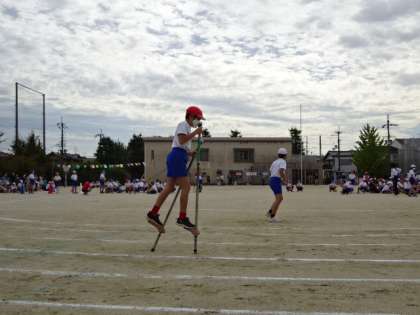 4年生に続いて5年生の部の様子です。アラカルトリレーでは,ドリブルや一輪車,竹馬等,9種目に分かれたバラエティーに富んだリレーでした。