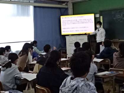 社会の歴史学習の時間の様子です。その時代ごとにどのような社会だったのかを知り,みんなが暮らしやすい世の中だったのかを考えています。