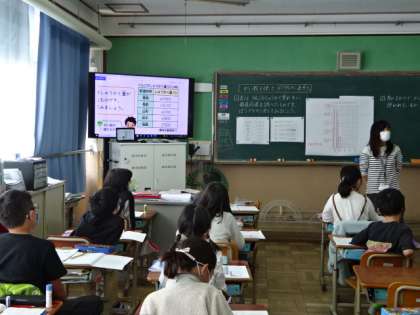 「がい数とその計算」の学習です。今日は,これまで学習してきた概数を使って,棒グラフに表す方法をみんなで学習しました。