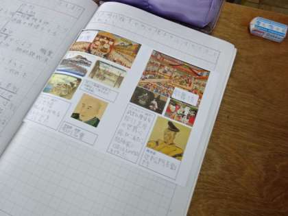 江戸時代の文化についての学習です。歌舞伎や浮世絵など現代にも残る文化が,当時の人々になぜ親しまれたのかを考えました。