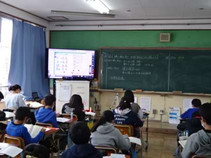 比例の学習です。ともなって変わる2つの数が比例関係にあるか調べました。