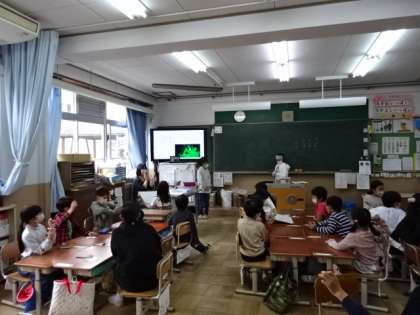 久しぶりのたてわり遊びで,たてわりグループで顔を合わすことができました。今日はたてわり委員が作った問題に,グループで挑戦です。「校長先生の名前は?」「上賀茂小学校は創立何年?」等のクイズが出題され,たてわりグループで協力して答えを出していました。