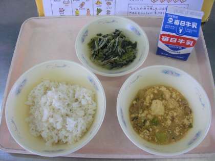 豆腐やほうれん草が苦手な子もいましたが,しっかりきれいに食べきることができました。