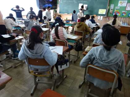 単元の復習問題に取り組んでいます。教科書にある問題だけでなく,プリントにも挑戦しています。取り組んだ問題は自分で答え合わせをしながら振り返り,学習したことの定着を目指します。