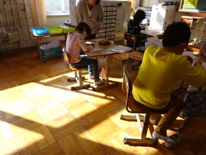 個別学習の時間は,各自,それぞれの課題に取り組んでいます。「今,漢字の練習をしているよ。」とか「計算ができた。」と,自分ができたことを嬉しそうに報告してくれます。