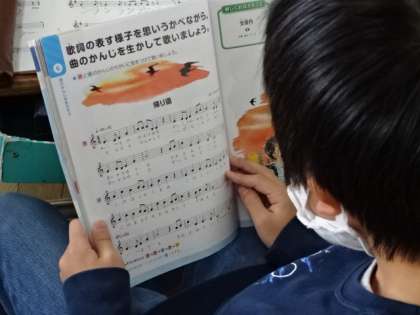 教科書にはいろいろな歌が出てきます。それぞれの歌のリズムや曲想をつかみながら,みんなで合唱しています。