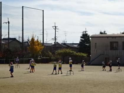 ポートボールの学習です。ゲームを重ねるごとに,チームの力も高まってきているようで,得点もたくさん入るようになってきました。熱戦が繰り広げられています。