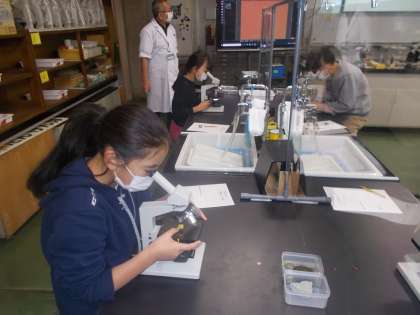 学校の理科室とはまた違った雰囲気の中,それぞれに観察実験に没頭する6年生。充実した学習でした。