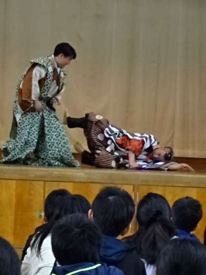 実際に「柿山伏」も披露してくださいました。間近で演じていただき,よく通る声や,独特な演技・しぐさをしっかり感じることができました。