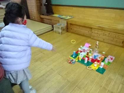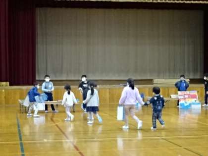 上賀茂こども園と上賀茂幼稚園の園児たちをお迎えして,交流をしました。これまで何度か交流を重ねてきましたが,今回は,生活科フェスティバルを開催し,2年生が用意したゲームを楽しんでもらいました。