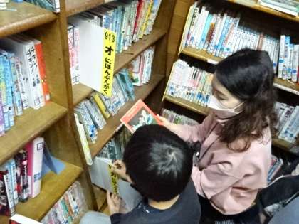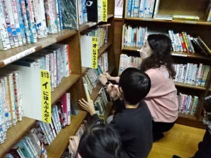 3年生の図書館での読書活動の時間の様子です。学校司書の先生にお勧めの本を紹介してもらったり,自分の読みたい本がある場所を教えてもらったりしています。読書の時間はみんな大好きです。