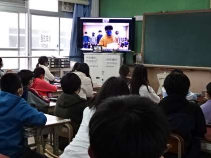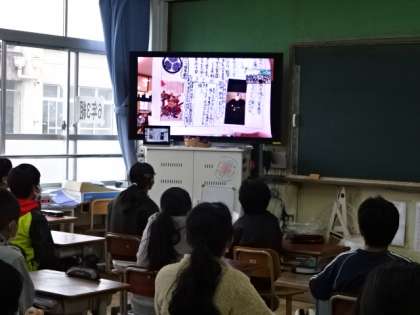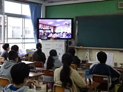 静岡市立葵小学校の6年生と,2回目のオンライン交流です。今日は葵小学校の発表を聞かせてもらいました。自分たちが住む京都との違いを意識しながら聞いていました。